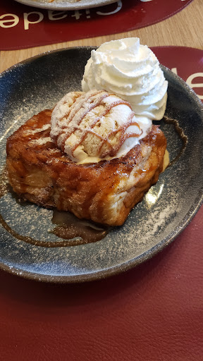 Had an excellent lunch while passing through to Calais from Belgium. Absolutely huge portions so come hungry. We had pork and potatoes with salad and an immense poached pair with chocolate sauce. Une grande bouffe ! Good service,a true french...