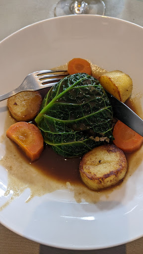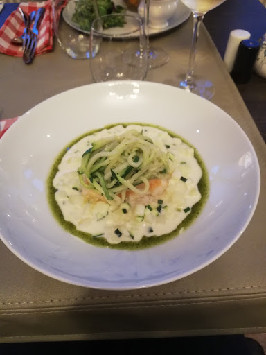 One local place I seemed to have missed! Excellent food, friendly service, nice interior. I only stopped first for lunch (18 euros starter/main), and looked forward to coming back for an evening meal. This Saturday we booked, and were shown to the table in the nicely appointed didning room. The menu was reassuringly short, with some clever takes on French classics. I went for the 'Pig's trotter on toast, with nuts and pickles' and my partner for the 'Shrimp Croquettes', we both chose the 'Veal Confit' as main. The trotter was incredible, delicate but retaining all the incredible flavour, the croquettes were fine and their dressing very good. The veal was absolutely divine, served with a parsnip puree and fine mushrooms. I ordered the parfait as desert, which again was stunning. for 73 euros including a half bottle of good wine (I was driving), was incredible value. Needless to say we will be back. Highly recommended!!