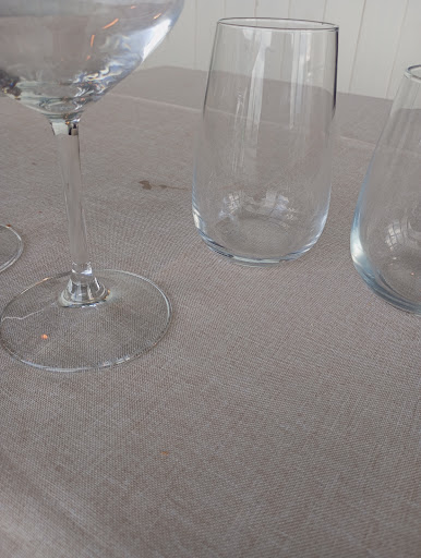 Trotzdem entschieden wir uns zu bleiben und eines der verfügbaren Gerichte zu bestellen (Risotto mit dem Fisch des Tages). Man setzte uns jedoch an einen schmutzigen Tisch – die Tischdecke war voller Krümel und Flecken. Auch die Stoffserviette, die ich bekam, war nicht sauber. Das Restaurant hat offensichtlich ein ernstes Hygieneproblem. Unten füge ich Fotos des Fensters bei, an dem unser Tisch stand – ich hoffe sehr, dass das kein Schimmel war, denn an der Decke hinter den Dekoblättern war ebenfalls ein verdächtiger schwarzer Belag zu sehen. Ich hoffe nur, dass es in der Küche besser aussieht.