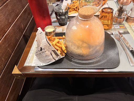 Moules and frites were today's special. Lovely. Good service. Decent price. It's like an English pub so also loved the atmosphere. Sitting outside it's also possible, but watch out for Wasps,...
