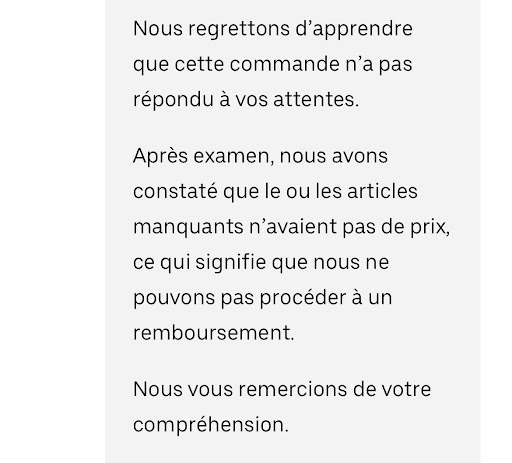 J’ai commandé sur Uber à 23:03, commande qui a été en effet annulée car rupture de stock. J’ai donc commandé à nouveau autre chose -qui l’était, en stock- à 23:11. La commande était affichée comme prête, avec une arrivée prévue de votre livreur pour 23:35. J’ai du attendre minuit, votre horaire de fermeture, pour pouvoir annuler cette commande qui n’est jamais arrivée. Inutile de préciser que j’ai tenté à plusieurs reprises de vous téléphoner afin de simplement savoir si ma commande allait être honorée ou non, et ce bien avant minuit.. Les difficultés de communication peuvent arriver ! Et une simple correction de votre part aurait...