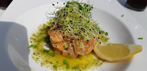 Mon amie et moi cherchions ce dimanche midi un bon restaurant avec une bonne vue sur le port et avons découvert le Yachting Club...(et nous n'avions retenu nulle part!!!).Après un accueil très convivial et sympathique de la part de la patronne,nous prîmes un apéritif(un excellent Américano en ce qui me concerne).Mon amie se décida pour le menu à 25€(entrée:camembert rôti(je ne pus m'empêcher d'y goûter...très bon!!!)et en plat:cassolette de la mer...dont elle s'est léché les babines!!!).En ce qui me concerne,je choisis un pavé de rumsteack sauce au poivre.....alors là.....EXCELLENT!!!(hyper tendre et une sauce maison à tomber par terre!!!).Le service est irréprochable et la dame qui sert est à l'écoute de la clientèle!.(léger bémol/il n'y a pas de petite bouteille de vin-37,5cl-et la salle gagnerait à être un peu plus chauffée...).La vue sur le chenal est super et le va-et -vient des bâteaux très agréable et reposant!Un excellent repas,une excellente vue et un accueil parfait!!!!que demander d'autre???(surtout sans avoir retenu!!!)
