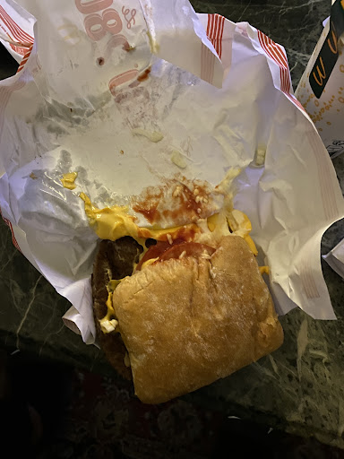 En mangeant sur place, j’ai commandé un menu Mc Smart. J’y ai trouvé une étrange matière verte dans le poisson chose que je n’ai jamais constatée auparavant. De plus, la sauce mayonnaise était très mal dosée dans le burger.