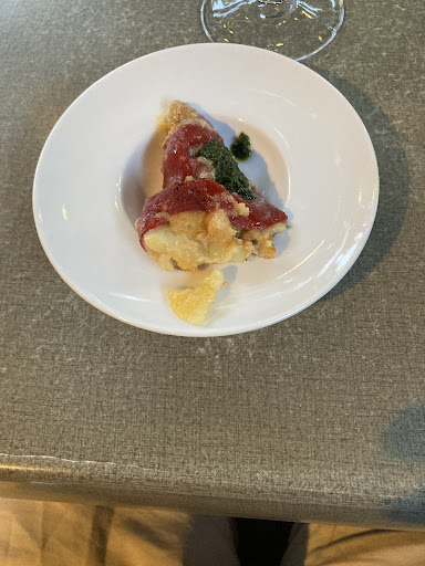 PLAT: La poitrine de cochon confite et croustillante Ă©tait tout simplement irrĂ©prochable, cuisson maitrisĂ©e, peau craquante, chair moelleuse et gouteuse. Elle Ă©tait servie avec une polenta crĂ©meuse, des lĂ©gumes de saison et une note ludique de popcorn qui apportaient un croustillant inattendu et amusant. un plat abouti, rĂ©jouissant, oĂč terroir et crĂ©ativitĂ© se rencontrent