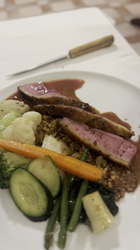 Read moreRepas d'un 24 décembre au soir. Repas à la carte. Nous devions manger dans un autre établissement qui lui sans prévenir nous a laissé devant une porte close. Sur les conseils de deux jeunes figeacois, nous sommes arrivés devant ce restaurant sans aucune réservation. On a pu nous recevoir pour un dîner en tête-à-tête. La première impression était d'un accueil un peu strict et protocolaire. Pour autant, au fur et mesure de la soirée, nous avons constaté une ambiance intimiste dans un cadre sobre qui nous a ravis. Le serveur est un jeune homme charmant très attentif à la demande de la clientèle. Le cuisinier que nous avons pu féliciter pour ses mets raffinés est un homme charmant également. La patronne -dont la tenue était superbe-, une fois le premier échange passé s'est avérée être à l'écoute de nos attentes. Nous n'avions pas décidé d'un dessert en particulier et ils ont respecté notre choix. Nous les remercions de nous avoir accueilli pour cette soirée spéciale en amoureux et ne regrettons plus d'avoir trouver porte close dans l'autre...