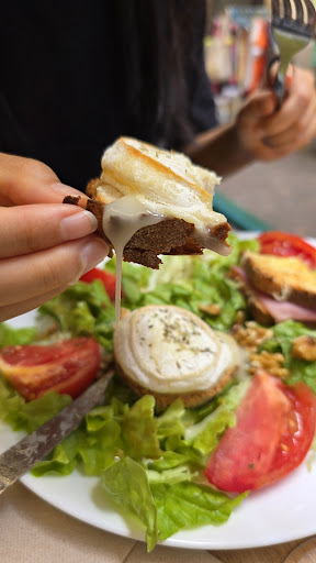 Read moreTrès déçue. Nous aurions dû nous en tenir aux croques monsieur qui sont très corrects dans le rapport qualité/prix. En revanche, les plats, bien plus chers, sont vraiment catastrophiques. Un magret de canard tout sec et simplement réchauffé , servi avec quelques potatoes (bonnes) et de la salade pour 15€. Quand à la salade rocamadour, de la salade avec quelques cerneaux de noix et... Du pain de mie basique avec un demi rocamadour (si ce n'est pas du picodon ?) et ... C'est tout : 11€ !! Ce devrait être une entrée et...