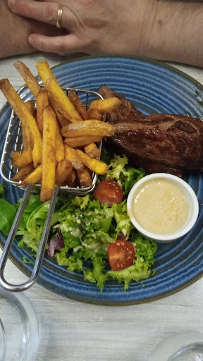 Read moreQuelle déception ! Nous avons de prime abord été attirés par ce petit restaurant au nom sympathique et à la déco agréable. Le menu du jour avait l'air attirant et la carte succincte mais alléchante. Hélas ! Nous avons eu la "bonne idée "de manger à la carte ce qui n'a pas eu l'air de plaire au personnel en cuisine. Bilan : une andouillette pas assez cuite puis insipide et un Burger végétarien totalement bâclé. De plus ( cuisine ouverte oblige ) nous avons pu profiter des remarques désobligeantes et irrespectueuses du cuisinier. Les desserts étaient bons mais n'ont pas suffi à rattraper le ratage total des plats. Le menu du jour était peut-être bien mais apparemment la carte n'est pas à la hauteur. Les deux "blancs-becs" en cuisine apprendront peut-être à leurs dépens que tous les clients ont droit à un...