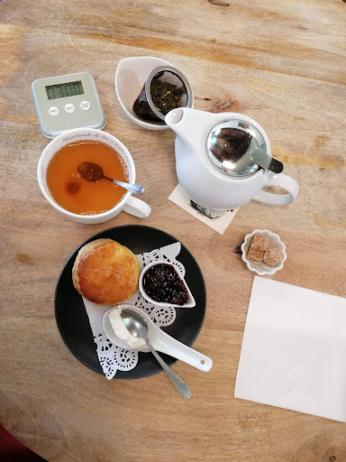 Read moreNous sommes tombées un peu par hasard sur cette adresse incontournable pour se réchauffer du temps pluvieux. Nous avons été tout de suite conquises par la petite boutique de thés séparées en trois parties : boutique, cuisine et salon de thé. Tout a été aménagé avec soin et goût pour donner ce côté cosy à l’anglaise qui fait du bien ! Scones à déguster absolument. C’est sûr, nous garderons un bon souvenir de notre...
