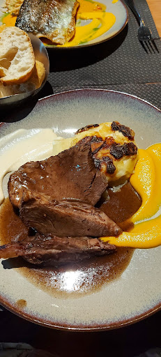 Read moreAprès une agréable journée aux Forges de Pyrène, nous étions passé devant sans y entrer car de l'extérieur les tarifs affichés paraissaient élevés pour notre budget mais ce qui nous avait marqué, c'était la bonne odeur et dieu que cela sentait bon ! Finalement, doutant de l'ouverture d'un restaurant que nous avons testé il y a deux ans, nous avons finalement opté pour notre dernière soirée en Ariège (18/07/25), ce "Bistrot". Il y avait deux menus (entrée/plat/dessert) : un à 25 euros et l'autre à 38 euros avec la possibilité de prendre à la carte. On s'était mis d'accord à l'avance de prendre celui à 25 mais finalement on a craqué sur celui à 38 pour 4 d'entre nous (nous étions 5). D'abord parlons du service... un accueil avec le sourire. Rien de plus agréable ! Puis il y a les demoiselles ! Elles étaient aux petits soins avec nous. A l'affût de tout et prévenantes. N'oublions pas non plus le "jeune homme en rouge" un peu plus âgé et qui semble avoir pleins d'histoires à raconter. Le repas a été une bonne surprise. Copieux... très copieux. Le paradis pour ceux qui ont un bon coup de fourchette. En résumé c'était délicieux ! Il y a de la maîtrise dans chaque met servi. Des saveurs à découvrir à chaque coin de l'assiette. Le coût est justifié et la plupart des ingrédients utilisés semblent être du coin. Le Cocktail de Fruits (sans alcool) et le Punch Maison étaient rafraichissants et bien dosés. Ils nous ont fait tout le repas. En entrée : des excellentes salades Caesar, une assiette de charcuterie, une panacotta de chèvre et une salade gourmande de gésiers et de foie gras maison. En plats : T-bone de veau sauce morilles, Parillada (dorade, sébaste, seiche, gambas), Brochette de boeuf. En desserts : une énorme coupe ariègeoise, un tiramisu abricot et des nougats glacés maison. Il y a eu un K.O. sur les deux plus gros carnivores de la famille. Addition pour 5 : 203 euros. Bravo et merci pour cet agréable moment dans votre établissement. Ne partez pas sans laisser un bon pourboire ! Toute...