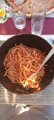 Mon groupe d’amis et moi nous sommes arrêtés par hasard pour dîner dans ce restaurant qui, de l’extérieur semblait tout à fait charmant, AU PREMIER ABORD… Nous arrivons donc à 9 sur une terrasse quasiment vide, un monsieur qui semble être le chef salle nous accueille avec la même sympathie qu’une porte de prison en nous expliquant que cela va être compliqué de nous faire rentrer tous sur une même table, nous proposant finalement de nous séparer… une table de 5 d’un côté et, 2 rangées de table plus tard, une table de 4. Nous et notre franche impression de déranger nous installons donc pour ce qui promet d’être notre plus grand moment de convivialité entre amis. En nous penchant sur la carte nous sommes déjà interloqués par le nombre de plats divers et variés disponibles à la carte pour un restaurant se présentant comme une Pizzeria (ce qui n’est jamais bon signe) sans parler des prix annoncés (13€ pour des pâtes au roquefort sérieusement ? à ce prix là j’espère repartir avec la brebis !) Mention tout de même pour le jeune serveur venu nous prendre la commande, très sympathique. Nous commandons donc 4 Reines, et le cauchemar ne fait que commencer… nous recevons donc 4 frisbees en pâte à sel dont 2 sur 4 sont cuits, badigeonnées d’un jus de tomates n’ayant certainement jamais vu le soleil, sur lequel repose un méli mélo sans saveur de jambon, champignons et fromage parsemés si et là. Dans mon désarroi j’ai donc tenté (alors que je ne suis pas un amateur) de pimenter mon frisbee à l’aide de la sauce piquante que nous avions demandé au serveur mais que nous avons dû finalement aller chercher nous même sur une autre table, mais rien n’y fait. La sauce est seulement piquante, sans aromates et encore une fois: sans saveur. Nous nous empressons donc d’avaler ce mélange d’amertume et de déception avant de se lever pour aller payer à l’intérieur. Pour clôturer notre expérience et en guise de geste commercial, nous assistons à une magnifique scène de ménage entre cuisiniers qui aurait presque pu faire monter la note de l’ambiance (non). Fuyez ce piège à touriste à peine déguisé, votre porte monnaie et votre flore intestinale vous en remercieront car oui, sans surprise, mes toilettes en font encore...
