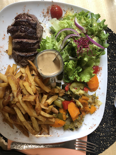 We had a lovely dinner here! Boeuf (filet mignon) was perfect, the fish of the day was a wonderfully prepared salmon, and our friends had the chicken with a lovely creamy coconut milk(?) and ginger sauce, and a wonderful appetizer plate of gazpacho, bruschetta, and a layered tomato/creme fresh/ricotta/chive offering. Wow. Then came dessert.... chocolate mousse with a caramel bottom layer on top of a liquid chocolate layer. Double wow. The service was great. The woman who seemed like the proprietor treated us like royalty especially after learning that it was our anniversary. Such a pleasant evening. Highly recommended, and the best dinner we...
