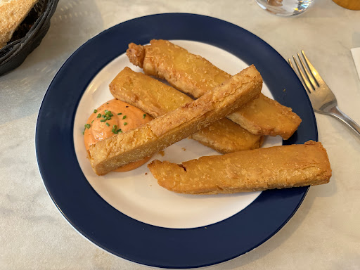 We started off with some entrées and I ordered the panisse which was very well-made with a light, crispy exterior and a dense, flavorful interior. I also got to try the velouté of the day which was a delicious creamy pea soup. Both were excellent choices. I later ordered the entrecôte with potatoes and the entrecôte was cooked perfectly. The potatoes were also great but as it was near closing time for lunch, many of the ones I got weren't the best quality. When I brought this up, I was able to get this replaced with some freshly-cooked vegetables which were also good.