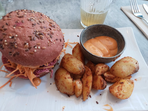 Aujourd'hui 14 octobre 2024 je décide pour déjeuner ce midi d'emmener ma mère ( 94 ans, j'ai moi même 68 ans) découvrir pour la première fois ce restaurant végétarien car c'est un des rares ouvert le lundi. Nous choisissons de manger à l'intérieur. Un jeune, sans doute le patron est derrière le comptoir. Nous entrons en disant bonjour. Aucune réponse. Nous demandons si nous pouvons nous mettre sur une table avec la banquette. Le patron nous désigne du doigt sans parler une table. Je fais remarquer à ma mère que la place qu'il nous indique est tout près du haut parleur qui diffuse du rock vraiment très fort. Et manger dans ces conditions n'est jamais agréable. On ne s'entend pas. Je vois à l'extérieur dans la cour un table avec 2 chaises. Mais je vois également que les assises des chaises sont couvertes de grosses gouttes d'eau ainsi que le dessus de la table. Je demande donc au patron s'il peut les essuyer afin que l'on puisse s'assoir. Et vous savez ce qu'il a fait ? Toujours sans me parler. Il me tends un torchon crasseux pour que je le fasse moi même !!! Hallucinant !!!