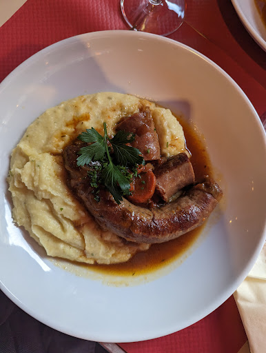 Tijdens de maaltijd had het restaurant ook maar 2 bezette tafels en waren de obers heel vaak heen en weer aan het lopen zonder een goede reden. De (vermoedelijke) bazin was ook bezig met papierwerk in de zaak en was aan het bellen op luidspreker wat de sfeer zeker niet ten goede kwam samen met het ontbreken van...