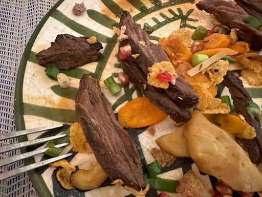 Read moreCame on Sunday, when quite a few nice restaurants were closed. Saw a rating of 4.3 (now wonder where it comes from) and decided to have a dinner there. I normally don't eat a lot of meat, but being in France you kind of have to. So, I have chosed "12 hours lamb". And was told it was finished (at 7PM). Asked if that starter which I didn't understand in French was like carpaccio. The waiter said yes. I got a pile of fried meat, which was not bad (not carapccio), but given that I ordered beaf for the main course hoping for a light carpaccio starter, I decided to take half of the "carpaccio" for takeaway. The waiter told me that they had to containers for takeaway. I gave up on the starter and was anticipating my main course - high quality beaf that cost 32 euros. I was surprised they didn't ask how to cook it (rare, etc). And what came at 32 euros were overcooked pieces of some sort of meat. See the photo. For an upscale restaurant charging 30+ euros for a main course this is...
