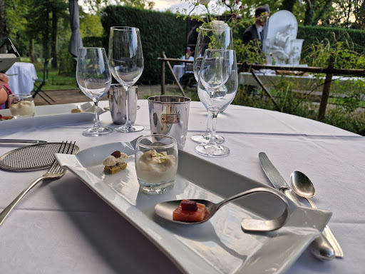 Een echte desillusie! Beoordeling geschreven op basis van pretenties en prijsniveau. Dit restaurant, gelegen in de oude stallen van Château de Bourron is ooit met liefde ingericht en waarschijnlijk was ook de rest ooit van goede kwaliteit. Voor vrijdag en zaterdag gereserveerd. Er werd aangegeven dat de kaart iedere dag wisselt en ook bij de bediening niet voor de avond bekend is. Het was heerlijk weer en we zaten buiten op een mooi terras. De vriendelijke en kundige sommelier toonde ons een fantastische wijnkaart met een enorme keuze aan recente en oude jaargangen van als het moois dat Frankrijk te bieden heeft. Feest dus! In het 3 gangen menu is er iedere gang een keuze tussen vlees en vis. De eerste set amuses was flauw van smaak. De sardine als tweede amuse heel erg goed. De mosselen als voorgerecht veel te copieus en waarschijnlijk reeds vooraf gekookt en de schuimige saus volledig ingezakt. Hoofdgerecht kalfsvlees met morillesaus. Drie soorten kalfsvlees (filet, staartstuk en zwezerik). Goede garing, zwezerik krokant. De saus was een te dik en gepureerd prutje zonder de mooie smaak van de morilles en de garnituren waren erg vlak. De tafels naast ons kregen overigens eend in hetzelfde menu als hoofdgerecht. Kaas in plaats van dessert was geen probleem, maar het gerechtje van warme camembert was ook geen winnaar. Koffie komt zonder koekje of de mogelijkheid er iets naast te bestellen. Ik zal u de prijs van de koffie niet vertellen. In Parijs zijn ze er vast jaloers op. Evenals het kleine flesje Perrier voor € 8,00. O ja, of de fooi niet contant gegeven kon worden, dan kon het meteen de broekzak in. Aanvankelijk wilden we de reservering van de volgende dag annuleren. Eigenlijk tegen beter weten in toch gegaan. Misschien valt het wel mee. Het menu was geheel hetzelfde als de dag ervoor! 'Uitsluitend voor ons' kon er één ander voorgerecht worden geserveerd en kregen we de eend als hoofdgerecht. Een andere saus dan het morilleprutje was niet mogelijk. Goed, maar weer een keer de mosselen en een krokant bakje met mousse van foie gras met drie groenten voor de ander. Het taartje bestond uit een drietal doodgekookte groenten, de mousse was korrelig en het bakje niet krokant.De beloofde truffel werd halverwege nageserveerd. Vergeten. De eend was om te huilen! Waar is de mooie krokante vetlaag? Waar is een goed mes om het grote stuk eend te kunnen snijden? En waarom zijn niet alle zenen uit het vlees gehaald? Aardappelpuree waterig en zoutloos, de knolselderij triest en slap. Het zout werd vermanend kijkend op tafel gezet. Prima kazen tussendoor. Dessert. Soes met een krokante laag (craquelin) die al lang niet meer krokant was, een smaakloze perzikcoulis en ga zo maar door. Daarnaast een gortdroge meringue en een enorm harde karamel. Om 22.50 uur vragen we om nog drie glazen armagnac. Deze worden om 22.55 uur geserveerd. Om 23.00 uur wordt ons te kennen gegeven dat het restaurant gaat sluiten. Dit is nooit vooraf gecommuniceerd, de dranken gewoon verkocht en is 23.00 uur niet erg vroeg voor een zaterdagavond? De armagnac van rond de € 20,00 per glas wordt in plastic bekertjes gegoten en we mogen dit meenemen naar buiten in de regen. Totaal verbouwereerd zijn we afgedropen. Op de vraag of we het erg vonden hebben we om de vrede te bewaren maar geantwoord dat dit oké was. We weten helaas wel beter.