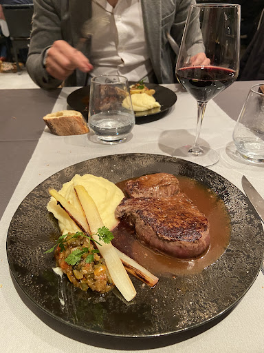 Read moreTrès joli cadre dans une véranda sur le jardin en étages (malgré que la devanture ne fasse pas envie). Personnel très agréable mais service vraiment très lent (nous sommes arrivés à 20h30, l’entrée nous a été servie à 21h30 et nous avons d’ailleurs annulé le fromage). Plats excellents, juste un bémol sur la sauce du filet de bœuf trop salée. Pour de tels prix on s’attend à ce que ce soit irréprochable. 147€ pour 2 entrées, 2 plats, 2 desserts, 2 boissons et 1 bouteille d’eau. La viande est quant à elle excellente. L’œuf au foie gras en entrée également. Le café délice est bon, surtout la glace à la menthe, et le dessert façon Paris Brest est excellent quoiqu’un peu petit. Merci pour...