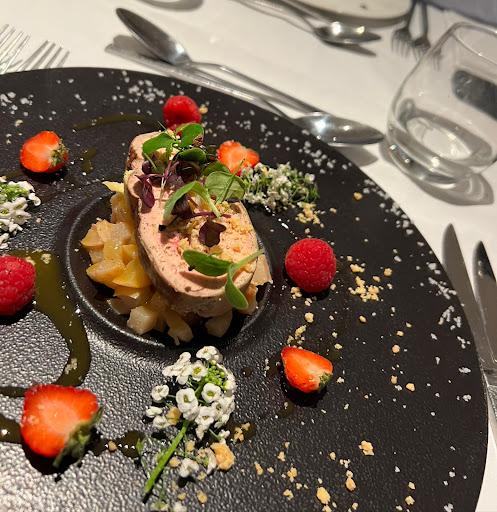 De notre arrivée à notre départ le chef et la jeune femme en charge du service ont été aux petits soins pour nous. Ils nous ont accueillis avec le sourire et quand ils ont su que c'était mon anniversaire, nous ont placé devant la cheminée allumée. J'étais ravie, car en plus d'être douillettement installés, nous avions vue sur la salle qui dégage une ambiance plutôt cosy.
