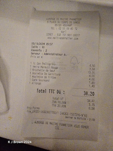 Read moreBonjour à tous les clients et clientes. Il est décevant de laisser un excellent avis 5* (Ci-dessous) dûment justifié par ailleurs, mais ignoré par le gérant de l'établissement à qui il était adressé ! Aucun retour ne serait-ce que pour dire merci ? Oh, je sais Il va m'être répondu le très célèbre Désolé !!! '' Nous sommes désolés, suite à une panne informatique, ou actuellement débordés par la saison, nous n'avons pas eu le temps ni pu vous répondre, mais sachez que si nous le regrettons vivement nous avons bien apprécié votre avis, et vous en remercions....'' Bla bla bla,baratin, etc. Donc, satisfaits ou non, pas la peine de perdre votre temps à complimenter et manifester soit votre satisfaction, ou le contraire. La reconnaissance n'est pas à sens unique, me semble-t-il .....1 , c'est déjà bien payé, mais le système ne permet pas d'en mettre 0 .Désolé 🙂 Ancien avis : 5 Devant nous rendre en Vendée (85) ce samedi 03 Mai 2025, nous en avons profité pour faire un petit détour dans ce magnifique et pittoresque village de VOUVANT. Nous le connaissions déjà mais nous n'avions jamais eu le temps de s'y arrêter pour s'y restaurer, c'est chose faite. Nous avions réservé à l'Auberge de Maître PANNETIER une table en salle intérieure car la météo était incertaine pour se mettre en terrasse quelques jours avant et heureusement car c'était complet et il faisait un temps magnifique. Nous avons été placés à la table N° 1.La salle est très jolie, spacieuse, des tables avec nappes et bien espacées les unes des autres ce qui est très agréable. Nous avons été très bien accueillis, et pour un service impeccable fait par deux charmantes et souriantes jeunes femmes très sympathiques. L'attente entre les plats est parfaite, ni trop courte, ni trop longue et les plats chauds arrivent chauds et dans des assiettes chaudes également. De quoi prendre le temps d'apprécier. La cuisine est bonne, pour un rapport qualité/quantité/prix très raisonnable, les assiettes bien dressées, et nous avons le choix entre la carte, un menu à 23€ et un autre à 35€, ainsi que les suggestions du jour. N'ayant pas trop le temps pour un menu disons plus gastronomique, nous nous sommes contentés de deux menus quasiment identiques à 23€ qui est déjà très bien. Nous avons choisi en entrée la très bonne terrine de campagne maison délicieusement agrémentée , puis en plat principal l'araignée de porc sauce légèrement piquante et au curry, accompagnée de légumes ( Panais, carottes classiques et carottes jaunes, ainsi que de courgettes, le tout cuit à point. En dessert, ma compagne a pris deux boules de glace avec de la vanille, et moi une part de tarte aux fruits là encore très certainement faite maison et excellente. Le repas a été accompagné d'une bouteille de 37,5 cl de vin de Loire en AOP Saint-Nicolas-de-Bourgueil BIO Domaine du Mortier : Le Domaine du Mortier excelle dans les vins bio et “Méthode Nature” et en apéro nous avons pris deux kir cassis. Le tout pour une addition à 65.80€ pour 2. J'ai pu lire certains commentaires peu sympathiques qui ne me semblent pas justifiées. Quand c'est bon, c'est bon, quand c'est mauvais, je sais aussi le dire. (Voir mes avis ) Pour nous, tout a été parfait. Auberge...