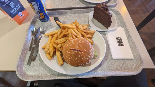 Ordered a cora burger. When I had seen it I thought " why is the patty on my bun smaller then the ones cooked there." Oh well. The burger had only the flavor of the cheese and sauce. The meat had no flavor, no sign of seasoning or anything to give it more feeling. The servers where friendly and tried really hard to help with my order within the mix of french and English and a little Spanish mixed. Fries were well warmed, look for salt trust me. The desert section had tons of bakery looks and tasted fair. So far 2 stars is all I can provide on this. Even if it is...