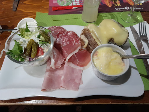 Read moreEn entrant on tombe sur le bar où des habitués semble-t-il prennent l'apéro un peu bruyamment. Sympa pour un café ou un bar mais pour un restaurant c'est bof. On ne nous propose pas d'apéro, du coup on passe commande de suite. Les sets de table, en papier, sont gras, tachés. Le plat de mon mari canard pommes sautées : le couteau, manche compris, est posé dans les pommes de terre, celles-ci sont sans goût, le canard est ok. Mon pavé de bœuf cuisson saignante respectée mais les frites sont molles. La salade qui accompagne est immangeable, défraîchie. Vous voyez la texture, le goût et l'odeur de la salade en sachet déjà ouvert depuis plusieurs jours.. Ben voilà. On nous propose la carte des desserts qu'on accepte mais ne reçoit pas... obligée d'aller la chercher moi même au bout d'un quart d'heure, pourtant le restaurant n'est pas blindé. La glace semble être au congel depuis un moment : cristaux et mon fondant est plutôt un moelleux. Nous avons dû réclamé 2 fois les cafés. Les wc sont propres, l'accueil et le personnel malgré tout sympathique. Il y a beaucoup de monde, en tenue civile, donc qui ne fait pas partie du service, qui entre dans les cuisines. Le cuisto lui en sort souvent pour réclamer des trucs au bar ??? Semble un peu perdu... Bref mauvaise expérience nous ne...
