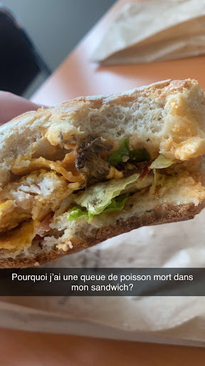 Read moreJ'étais assez étonné quand j'ai aperçu un papillon de nuit dans mon sandwich (au premier abord j'ai cru à une queue de poisson comme l'insecte était tout écrasé). J'avais acheté 2 sandwichs ce jour là, on m'a seulement remboursé celui avec le défaut, pas de petit geste comme excuse. La serveuse était très désagréable donc je n'ai pas cherché à comprendre et je suis sorti. Après plusieurs mois je décide d'y retourner en demandant de regarder les sandwichs tout en expliquant calmement mon ancien problème, une gentille serveuse de ce midi était d'accord avec moi donc elle appelle sa collègue pour lui expliquer mon problème, je reconnais la madame désagréable de l'autre fois, elle me reconnait aussi et dit "je vous ai déjà fait un geste" sur un ton agressif. De plus rembourser le sandwich qui présente un insecte mort ou vif à l'intérieur, ce n'est pas ce que j'appelle un geste, mais plutôt la moindre des choses, enfin bon je ne râle pas sur le sandwich mais plutôt sur vous, Madame. Pourquoi faire ce métier si vous n'aimez pas la relation client ? Si vous n'aimez pas servir des clients, qu'est ce qui vous retient dans le travail que vous faites ? Pourquoi êtes vous si...