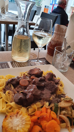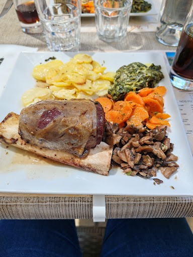 Read moreComme à notre habitude, c'est en découvrant les jolis paysages de France en moto, en passant dans ce petit village que nous avions posés nos casques de moto à ce restaurant dont le menu des mets nous a donné l'envie d'y plonger . Deux plats qui étaient proposés au menu du jour parmi d'autres plats aujourd'hui. J'avais pris un jarret de sanglier, un vrai régal pour mes papilles... Bémol , il aurait fallu une confiture d'airelles ou sauce au vin ou autre pour accompagner le jarret dans l'assiette sans sa robe il était trop nu, les carottes étaient des fraîches, pomme de terre pour ma part c'était du sous -vide , champignons et épinards du congelé.. Le positif de ses produits sous vide et congelés ça était bien travaillé donc ça passe très bien avec le jarret. Le deuxième plat était la daube du sanglier, un succulent plat servi avec des spaghettis.... Bémol, je pense que ce n'était pas nécessaire de servir la même garniture que le jarret, les spaghettis étaient suffisantes. Un gratin de pommes de terre fait maison c'est encore mieux 🙂!! Très copieux les deux assiettes. Nous n'avons pas pris de dessert. Nos deux assiettes rendues avec un merci pour ce bon repas dans la découverte de ce restaurant, le personnel malgré leurs jeunes âges a été très à l'écoute de nos demandes et merci pour leurs sourires c'est tellement plus agréable. Je vous recommande ce restaurant et sa petite terrasse nous l'avons beaucoup apprécié. Merci à toute l'équipe ✌️ bonne...