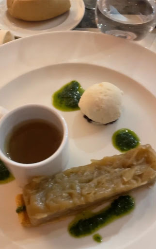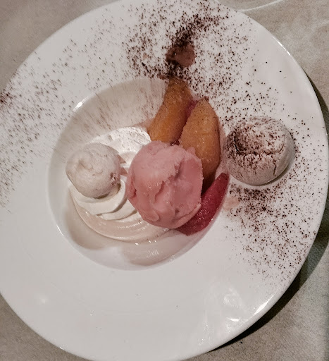 Read moreRestaurant à la hauteur en ce qui concerne le menu, sauf pour le pain qui était froid et vraiment dur sûrement de la veille. Ce restaurant a besoin essentiellement le samedi soir, d'avoir des serveurs plus expérimentés. En effet, hormis le serveur qui renverse le vin en servant et ne prend pas la peine de changer la nappe salie, d'essuyer le verre dégoulinant de vin et une des assiettes à pain pleine de vin, nous avons été contraint d'appeler pour que l'on nous amène du pain et pour que l'on nous essuie le verre de vin....A remarquer aussi, à la dernière bouchée par contre, les jeunes serveurs qui se précipitent pour débarrasser, ce qui est un...