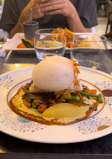 Ayant des goûts culinaires difficiles je ne pensais pas apprécié ne serait-ce qu’un seul repas que la carte propose, mais je fus agréablement surprise. La cuisine est juste exceptionnelle, les plats sont préparés minutieusement et dans les détails. On pourrait penser que la taille (pas copieux)d’un plat ne suffirait pas à satisfaire notre faim mais ce n’est absolument pas le cas. Le/les chef cuisinier ont de l’or dans les mains ! Le personnel du restaurant est aussi exceptionnel : à l’écoute de nos besoins, souriants, courtois, efficace et dynamique, organisé (que ce soit les plats ou les boissons nous sommes servis très rapidement, l’attente n’est pas longue ), Chaleureux et Impliqué (ils nous renseignent parfaitement bien sur les différents plats qu’ils proposent).