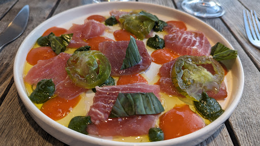 Côté cuisine, le chef Thomas Prat nous a fait vivre un véritable festival de saveurs. Au niveau des entrées, que ce soit les figues rôties au miel, la caponata d’aubergines ou encore l'ajo blanco aux coquillages, chaque plat était un régal pour les papilles. Le mélange de textures et de goûts était parfaitement équilibré, mettant en valeur la fraîcheur des ingrédients.