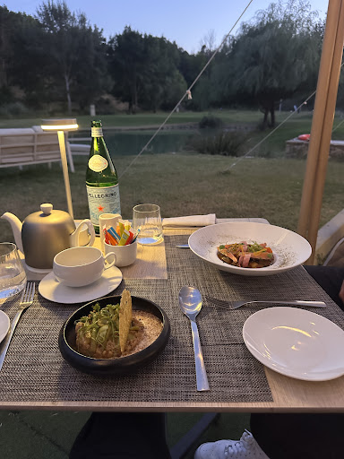 Read moreMalheureusement, nous n'avons pas Ă©tĂ© convaincus par ce dĂźner. L'emplacement du restaurant en bord de lac est agrĂ©able dans un dĂ©cor naturel qui rend bien. Le service est un peu dĂ©routant : Ă notre arrivĂ©e (19h30), l'on nous dit de vite commander pour Ă©viter la panique en cuisine et pour ĂȘtre vite servis. Nous avons trouvĂ© le sommelier, qui certes donne l'impression de connaĂźtre son mĂ©tier, mais Ă la limite prĂ©tentieux. Nous avons entendu quelques rĂ©flexions/ recadrages lancĂ©s aux 2 jeunes serveurs qui font du mieux qu'ils peuvent et sont trĂšs aimables. Quant aux plats, les quantitĂ©s Ă©taient limites (surtout pour la quantitĂ© de poisson dans l'entrĂ©e de carpaccio), le paleron de bĆuf Ă©tait trop sec. Les tarifs trop Ă©levĂ©s pour ce que nous avons mangĂ©. Certes nous payons le cadre, mais ce qu'il y a dans les assiettes compte...