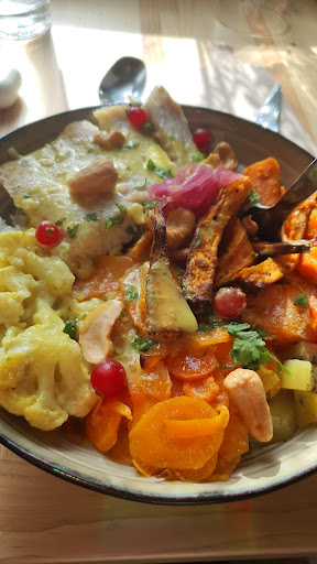 Restaurant qui s'est installé il y a une quinzaine de jours. Produits sains et bons, toutefois quelques ajustements : le dessert ganaché est au final assez dur (mais savoureux), les prix ne sont pas affichés à l'extérieur (si ce n'est la formule du jour). J'ai trouvé ce repas trop cher pour mon budget, d'autant que je n'ai pas été calée. Malheureusement, le restaurant était encore en travaux, ce qui n'est pas toujours très agréable, et il manquait les ingrédients principaux du Veggie Bowl (et certains desserts), ce qui était décevant pour moi qui suis vg. Les propriétaires étaient peut-être contraints d'ouvrir à cette date, mais il était regrettable que les travaux soient toujours en cours, la déco non terminée et des manques dans la réserve.