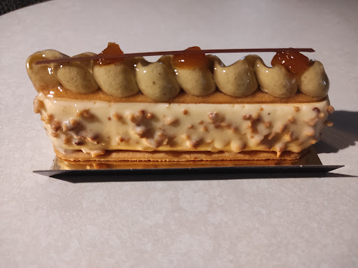 Bought a Praline Tartelette, some mini Tartelettes, some Macaroons and a big Raspberry Macaroon. Ingredients are wonderful, great quality. A lot of flavour, a lot of love in these products. The Praliné Tartelette was amazing, never had anything similar. The small tartelettes and the macaroons were top-notch as well. But then there is the big Raspberry Macaroon. That was divine. Never had we a macaroon of this quality. Nicely baked, still has a bite, but also soft. The perfect balance. Wonderful custard. And the raspberries: oh, so sweet. And almost no seeds. Whipped cream was very nice as well, not your average can whipped cream. If you look for perfection, look no further. This is it. This is the place. Staff was really friendly as well, let us take time browsing and choosing. Don't leave town without getting some dessert here. Highly recommended. I...