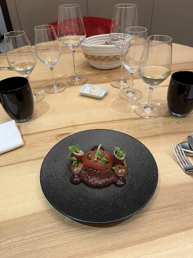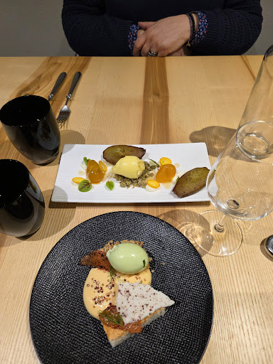 My wife and I visited for Wednesday lunch. The restaurant is nicely decorated with a relaxing colour scheme and pleasant music playing not too loud. We selected the 5 course menu with matching wine. The young lady who was sole front of house, was friendly and helpful. The food was outstanding. Fresh flavours using combinations we would not have dreamed of but which in the hands of an expert chef work together wonderfully. Who would have thought that tuna and strawberries would be a match made in heaven? The wine pairings were also very good and matched the dishes beautifully. We would highly recommend if you are interested in exciting...