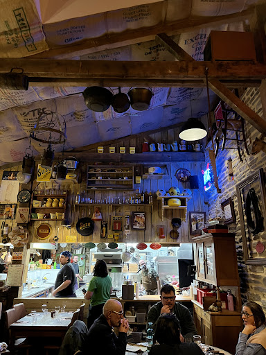 Read moreAlors là, j’ai rarement été dans un si bon restaurant que celui ci. Déjà on rentre les odeurs de la cuisine arrivent envie c’est fou, ça sent si bon. Nous avons été installé, l’univers de la décoration est génial, plein d’objets provenant de la brocante. L’ambiance est absolument incroyable, les deux partons sont vraiment bienveillant, drôle, accueillant et surtout ils aiment mettre la bonne ambiance. Les deux ont un micro et chante et parle à travers tout le restaurant, ça met l’ambiance, mais bien sûr cela ne gêne en rien les discussions et les repas de chacun. Le service est parfait, pas d’attente alors que nous sommes venus le 14 février au soir. Le restaurant est complet il faut réservé à l’avance. Cet un établissement très prisé par les connaisseurs de bon vivants. La qualité des repas est absolument incroyable, nous avons pris une planche de charcuterie (20€), jambon grillé (14€), entre côte (450g pour, 41€), 2 verre de vin et un ponche. Le tout pour 101€. À aucun moment nous avons eu le sentiment d’avoir payé le prix fort, les plats sont généreux si bon. L’entrecôte est splendide, c’est simple j’ai jamais mangé une si bonne entrecôte, les patates qui accompagne sont folles. Nous avons pas pris de dessert car nous avions plus faim. Je recommande INFINIMENT ce restaurant. Cette soirée de st valentin a notamment été réussi à grâce au...