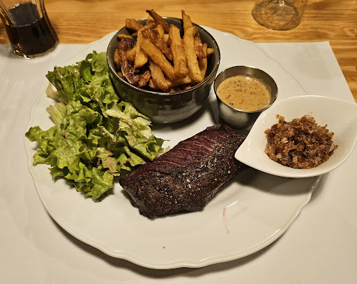 Out of the way of the normal tourist locations, this was a great find. All in French.. no English, so have your translator ready (if needed). Simple, modern decor. Good food. I had the cod, very tasty. Companion had the 'butchers choice', very tender and well cooked. Lots of other diners seemed to be having that. Service was efficient and friendly. Relaxed atmosphere, no...