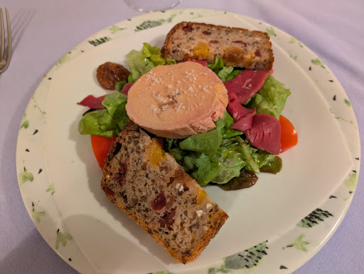 Les entrées (foie gras maison et salade de la mer) étaient super bonnes. Idem pour les plats (filet de bœuf sauce aux airelles et magret de canard au chouchen). Les cuissons, les saveurs, le service, tout était parfait. Le bœuf était tellement bon que j'en ai mangé la moitié avant de penser à la photo !