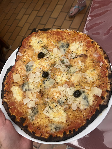 Read moreVaried menu, pizza was delicious as were the desserts. Friendly staff who tried to help us non French speaking customers. Reasonable price less than âŹ140 for 6 pizzas with 2 carafe of wine and dessert. Well...