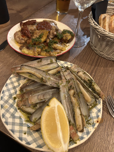 Un lieu trĂšs convivial, avec apparemment un large Ă©ventail dâhabituĂ©s! ArrivĂ©s nombreux et Ă lâimproviste, on a malgrĂ© tout pu avoir une table (malgrĂ© les lĂ©gĂšres brimades du patron). Service super agrĂ©able bien que relativement lent. Ils Ă©taient seulement deux (un en cuisine, lâautre en salle) pour un Ă©tablissement complet de chez complet! Câest assez Ă©tonnant et du coup, malgrĂ© la bonhommie, on attend un peu longtemps. Mes couteaux sont arrivĂ©s froids et vu lâattente pour commander un autre verre de vin jâai prĂ©fĂ©rĂ© manger froid que demander de rĂ©chauffer. Pas de vins natures, ça semble ĂȘtre un choix, un peu regrettable en ce qui concerne mes attentes mais les vins qui mâont Ă©tĂ© servis Ă©taient trĂšs corrects. Les suggestions de tapas correspondaient Ă de vrais plats, jâai pris les araignĂ©es de porc. TrĂšs consistant (et un peu salĂ© aussi). Jâen ressors pas entiĂšrement satisfait mais câest largement dĂ» Ă mes attentes je pense. Lâambiance est bonne, et la ville serait moins vivante sans cet Ă©tablissement, ça vaut bien 5 Ă©toiles...
