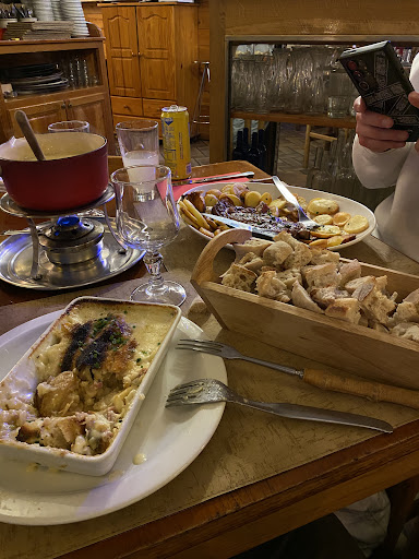 Read moreÀ fuire de toute urgence ! Le patron est juste incompétent, désagréable et hautain. Nous étions une table de 8 sur les 12 clients du soir. Il a refusé de nous offrir deux génépi et nous a surtout chassé alors qu'on était en train de payer sous prétexte qu'on était dans le passage ( Je précise que nous étions là où on nous a demandé d'aller pour payer et surtout nous étions alors les derniers clients du restaurant donc nous ne génions personne). C'est incroyable de croiser de tel personnage n'ayant aucun sens du commerce. Aucune reconnaissance alors qu'il a fait la recette de sa soirée grâce à nous. Sans parler des desserts à 12€ !!! Bref un piège à touristes qui ne cherche que le chiffre mais qui ne risque pas de nous revoir. Heureusement que la serveuse était très agréable et très pro mais que ce cher patron n'a pas manqué de dénigrer en précisant qu'elle n'était...