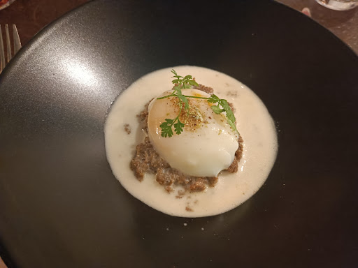Read moreAprès autant d'éloges, grosse déception pour une première. Certes nous appelons pour reserver a 20h50 , après une séance de cinéma. Accueil téléphonique très positif et enthousiaste. Sur place à 21h, nous avons attendu 45mn avant d'être servis. Jusque là rien d'inquiétant. Nous avons commandé des plats de poisson qui nous ont été servi dans des assiettes creuses, entre bol et soupière. Pas facile d'epiauter et d'enlever les arêtes dans ce type de récipient oú poisson, légumes et sauce, tout se mélange. Et pour couronner le tout, nous attendons toujours le pain qu'on nous promet en vain, jusqu'à ce que, à force d'insister on apprend qu'ils n'en avaient plus, même pas au congélateur. Je ne remets pas en doute la qualité des plats, que malheureusement je n'ai pas pu apprécier à leur valeur, mais pourquoi accepter des demandes tardives si vous n'êtes pas en mesure de répondre, que ce soit au niveau du service ou des ingrédients. Et plutôt que de nous faire poireauter, annoncez la couleur, si vous êtes en rupture. D'autres établissements nous ont répondu négativement juste avant et on le comprend et l'accepte sans problème. Dans votre cas, l'appât du gain nous a valu un dîner gâché et ce commentaire que j'aurai préféré éviter sur...