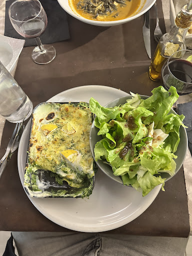 Oups!!! Sur le chemin du retour des vacances nous nous sommes arrĂȘtĂ©s dans ce restaurant au bord de la route.... L'Ă©tablissement ne donne pas trop envie de l'extĂ©rieur avec un bĂątiment vĂ©tuste. Le jardin est pourtant sympathique, malgrĂ© les tables rouillĂ©s. La patronne est Ă peu prĂšs souriante, le serveur/cuisinier un peu plus sympa, le patron (ou du moins je pense qu'il a ce rĂŽle) pas trop non plus. On passe la commande apĂ©ro : 1 verre de rosĂ© et une leffe blonde. Tout va bien. On regarde la carte.... un nombre impressionnant de pizza base tomate et base crĂšme, une douzaine de plats de pĂątes et pas mal de salades. Du coup quelques doutes sur la fraĂźcheur des produits... Je commande une pizza espagnole (chorizo poivrons) en demandant un supplĂ©ment oeuf et merguez... rĂ©ponse de la patronne : nous n'avons pas d'oeufs !!!!! Elle nous dit qu'ils ne travaillent pas avec les Ćufs car trop de contrainte sanitaires.... J'ai quand mĂȘme eu les merguez... Madame a commandĂ© un gratin de raviole... Le plat arrive, il est froid... on le signale au "patron". Il rĂąle... mais reprend le plat. La patronne passe et nous explique qu'ils sont fait minute et donc c'est une cuisson compliquĂ©e.... Puis le plat revient avec le serveur/cuissot qui nous explique "ils sont tellement gelĂ©s que j'ai du mal Ă les rĂ©chauffer".... en gros les ravioles sont congelĂ©s et ils les mets au four pour les cuire et gratinĂ©s... La pĂąte Ă raviole est crue, indigeste. Nous ne pouvons donc finir le plat. La pizza est suffisamment bonne pour ĂȘtre finie. Nous commandons juste un cafĂ©, pas envie de risquer un dessert. Le cafĂ© est pas bon, un bon vieux "jus de chaussettes" Bref nous avions faim donc nous nous sommes arrĂȘtĂ©s en nous disant 4.2/5 sur Google ça doit ĂȘtre pas mal... ratĂ©. La prochaine fois nous continuerons...