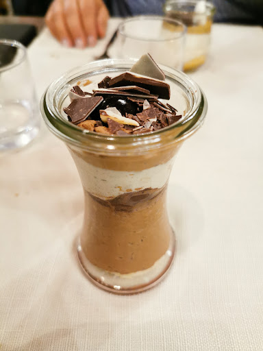Read moreIl faudrait relire la fable de la fontaine : le renard et la cigogne où il est question d'un vase à long col et d'étroite embouchure .......je me suis demandé si j'allais arriver à manger le plat principal de viande...Rires !!! ..mais le portefeuille rit moins !!!! Les verrines (toutes petites ) c'est une manière de servir moins de quantité et de ne pas s'embarrasser de la présentation des plats ...heureusement la cuillère est la ....!! ReRires !! En qualité les produits sont dits bio et locaux Mais aucune mention des producteurs locaux et des références comme cela se fait partout ailleurs ; il faut les croire ..... Même si c'est goûteux le compte n'y est pas du tout : trop minimaliste ; lorsque on voit arriver chaque plat on ouvre grand les yeux et on se demande si ce n'est pas pour lilliputien