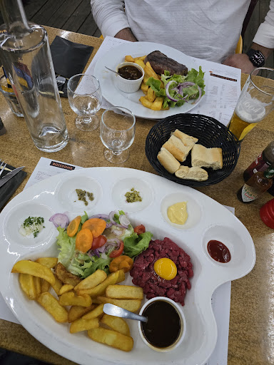Côté assiette justement, parlons-en : • Le tartare ? Viande correcte, mais quantité de condiments dérisoire. Résultat : fade. • Le pavé de bœuf ? Cuisson respectée (encore heureux), mais proposé uniquement en bleu ou saignant – étrange. Viande nerveuse, accompagnements sans intérêt. • Les frites : trop cuites, non salées. • La sauce aux cèpes : supplément de 2€ pour une sauce épaisse, manifestement à base de cèpes déshydratés, très forte en goût et servie dans un ramequin franchement sale. • La salade : peu assaisonnée, sans relief.