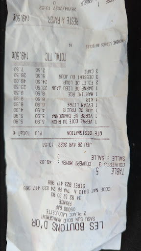 Read moreMauvaise adresse... L'unique étoile que je donne à ce restaurant est pour le jardin qui est très bien entretenu et agréable. Sinon, du début jusqu'à la fin il s'agit d'un très mauvais rapport qualité-prix voire même d'une arnaque ! Nous avions commandé un apéritif, le kir était fait à partir de sirop de grenadine, les jus de fruits ne correspondaient pas à ce que nous avions demandé et la carafe d'eau plate s'est transformée en bouteille d'eau 75cl à 7€ ! Concernant le menu, ne vous fiez pas à ce qui est affiché à l'entrée, le menu à 19,5€ n'est pas proposé. Au lieu de cela, comptez plutôt sur des plats à 20-35€ qui ne sont pas exceptionnels (le poisson n'est clairement pas frais et les sauces sont fades). Néanmoins, la présentation des plats est soignée. Vous serez servi par le cuisinier sympathique et très bavard mais qui n'explique pas très bien ses plats et ne donne pas un service à la hauteur des prix ! Le dessert n'est pas fait maison contrairement à ce qui annoncé (la mousse au chocolat glace peut probablement être trouvée à Picard). Par ailleurs, les noms à rallonge ne sont pas synonyme de qualité (nous avons notamment été surpris par la salade de fraises avec un peu de chantilly) Comptez donc 150€ pour un apéritif décevant (sans cacahuètes ou autre accompagnement) trois plats moyens et trois desserts passables mais...