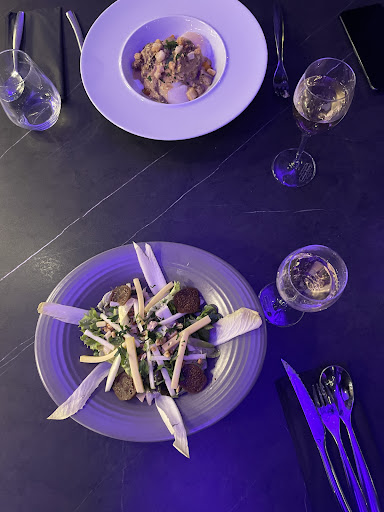 Dès les entrées, nous avons été conquis : les œufs parfait et la salade César étaient tout simplement délicieux. Nous avons ensuite goûté le pluma de porc, une vraie découverte culinaire, succulent et parfaitement préparé. Pour finir, une crème brûlée légère et savoureuse, le tout accompagné d'une excellente bouteille de Crozes-Hermitage. Chaque plat était une réussite, tant par la qualité des produits que par leur exécution.
