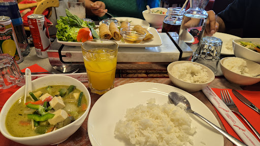 Read moreWe came with high hopes which, unfortunately, were soon dashed. The starters were passable but the main courses barely edible. The green curry was more akin to a watery hospital soup with no flavour beyond salt and containing slices of duck resembling chunks of boot leather. The caramel pork was so tiny my companion and I both laughed when it arrived. It was sickly sweet and oily. To top of it off, the sticky rice could have done with some of the salt to liberally applied to the liquidy imposter for a green...