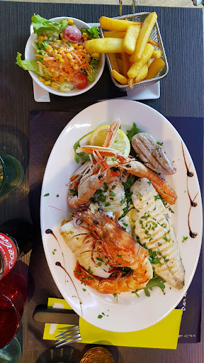 My family and I found this place superb the interior had a dark theme with an aquarium the outside terrace had plenty of tables and parasols. We were warmly welcomed by a waiter who was very kind and quickly seated us. They were many choices on the menu to choose from, pizzas, pasta, seafood, etc. However, do not expect to be served quickly, we ought to wait for quite some time, but the dishes were delicious!