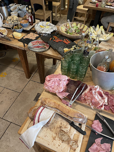 Read moreBrunch illimitĂ© incroyable (et super pour le 1er janvier!). TrĂšs bon qualitĂ©/prix pour 55âŹ, produits locaux, grande diversitĂ© avec beaucoup de choix salĂ©s : un buffet froid avec quiches, salades, saumon cru et fumĂ©, charcuterie, fromages, pains, Ćufs durs mayonnaise et autre! Vous pouvez aussi commander des Ćufs aux choix brouillĂ©s/omelette etc. Des jus, eau minĂ©rale et pĂ©tillante, thĂ© et cafĂ© (sur commande, lâespresso Ă©tait dĂ©licieux). Un bar Ă alcohol et liqueur. Un coin plats chaud fondue, gratin dauphinois Ă tomber, gratin de crozets, volailles aux champignons, et un veloutĂ© de courge⊠le meilleur de notre vie! Enfin, de bons desserts dont une superbe mousse au chocolat, flan pĂątissier, cookies, brownie, gĂąteau Ă la pomme, un stand Ă pancakes, etc.