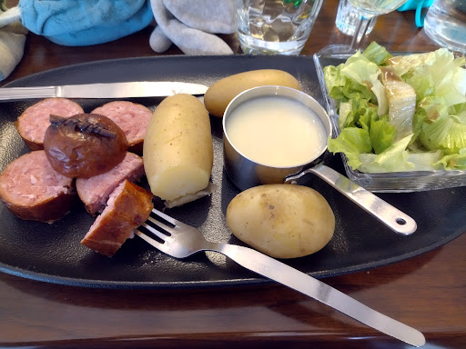 Read moreCarte proposant de bons plats de la région, le plus dur est de choisir. Mon choix s'est porté sur la saucisse de Morteau, servie avec des pommes de terre et de la cancoillotte: assez copieux et très bon. Le plateau de fromages vaut également le détour. Desserts un peu chers mais de bonne qualité. Le personnel est avenant, souriant, et les plats arrivent assez vite. Bref, une bonne soirée dans...